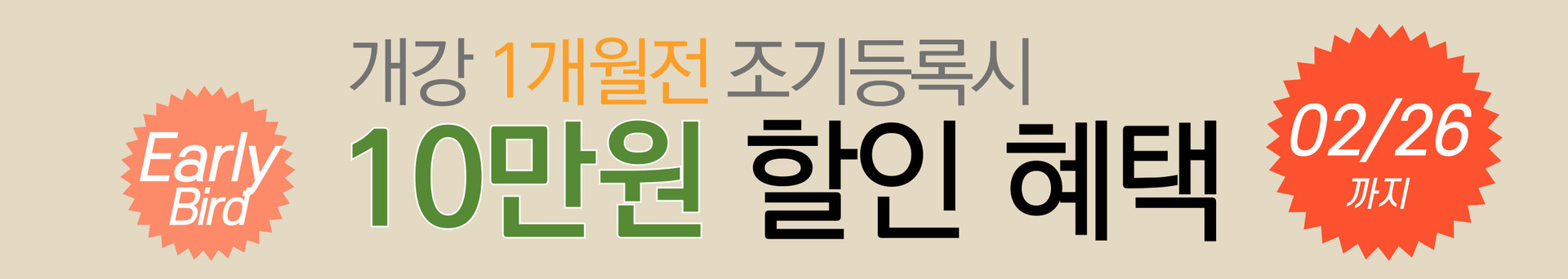 | 개강 1개월 전 등록 시 | 등록금 10만원 할인 |